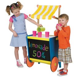 Children will enjoy hours of fun indoors and out setting up shop to play with their neighborhood friends. The colorful portable lemonade stand is easy to assemble and is perfect for the young entrepreneur. The stand is constructed of wooden panels, 2 colorful oversized wheels, chalkboard front panel, dry erase counter top, and colorful fabric awning. Measures 20.5'L x 23.5'W x 48'H. For ages: 3 ...